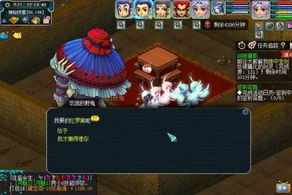 靠墙进入房间后,到处都是瓶子,每个瓶子都能触发战斗。这里有五场战斗。每次2:00,瓜瓜总是7:00完成率进入,17:00完成率出去。你可以自己数数。在这里,你将获得满意的丹、锦盒、宝图等。