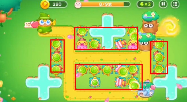 第四,第八波就是造了很多乌龟塔,把妖怪经过的路线旁边都造了乌龟塔。