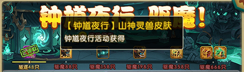 进度奖励中可获得【钟馗夜行】灵兽皮肤、【钟馗夜行】农场皮肤。