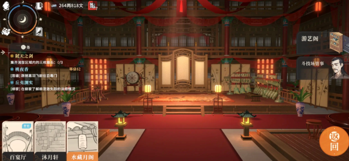 4、在月桂楼内找到花娘,与她对话并正确说出从江湖闲汉处得到的暗号。暗号核对成功后,新地点“水藏月阁”就会对你开放了。