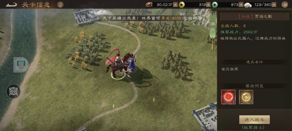 新三国志曹操传游历事件贾诩之影怎么过?本关难度较低,推荐使用吕布、诸葛、周瑜等高爆发角色,两回合内即可通关。详细打法可参考新三国志曹操传游历事件贾诩之影攻略。