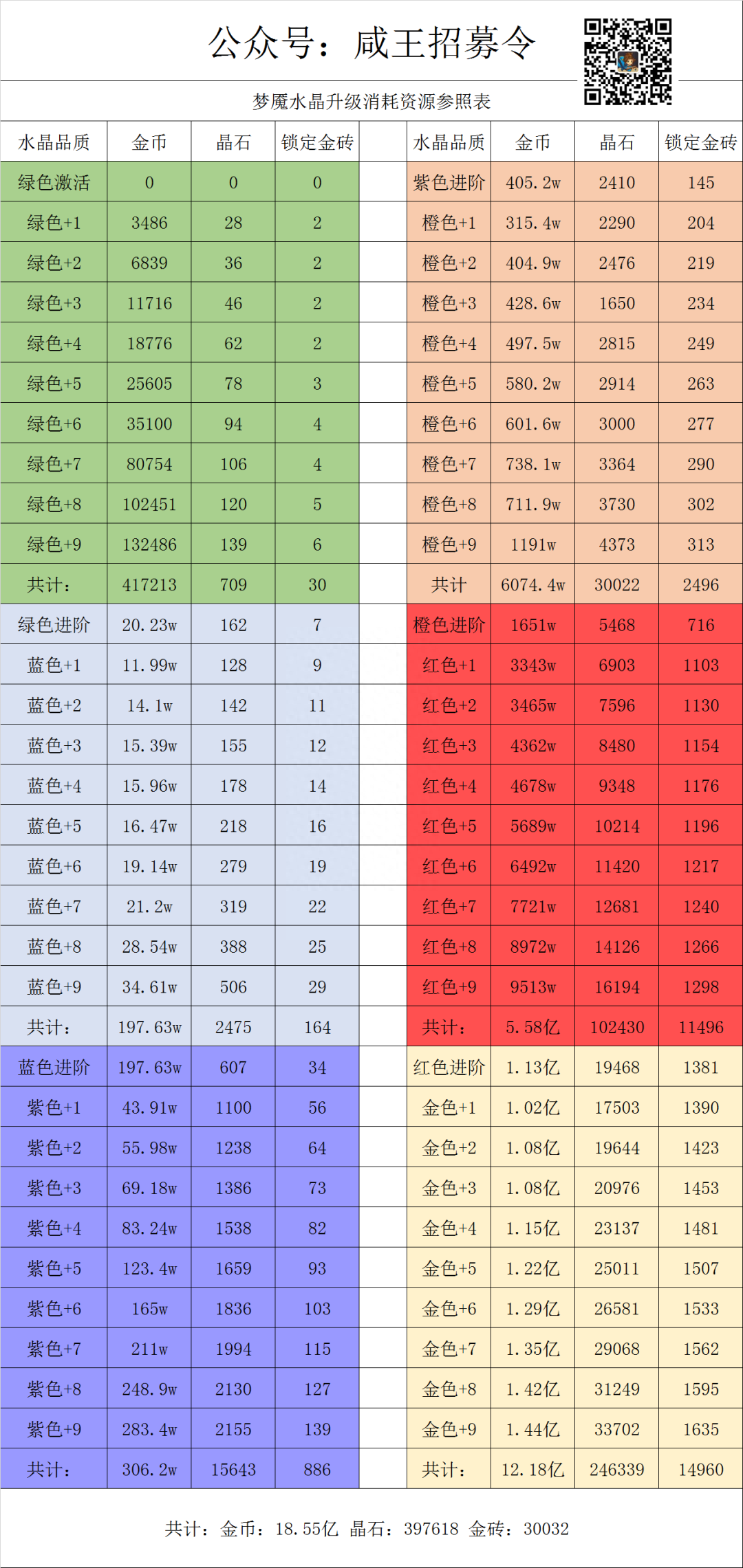 咸鱼之王【咸鱼攻略】梦魇晶石升级消耗参照表,让你升级更有谱!如下: