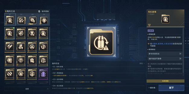 逆行者可以在主武器和副武器上装配武器插件,插件能够带来额外属性提升,和词条效果。通过不同的插件组合,同一把武器也能有多种战斗流派。
