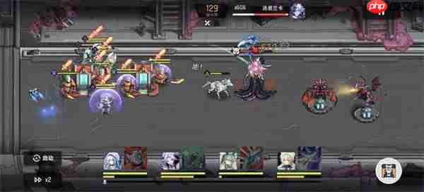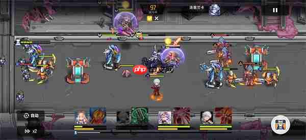 优先索敌手动点击,集火秒杀沉默法师——推荐使用左侧输出位角色劳飞与依诺组合,二者技能具备高瞬伤与打断特性,可有效压制其施法节奏; 若需兼顾两侧压制,右侧可部署飞机(范围压制+浮空控制)与火男(短CD爆发+灼烧持续伤害),形成交叉火力网,快速瓦解法师阵列。