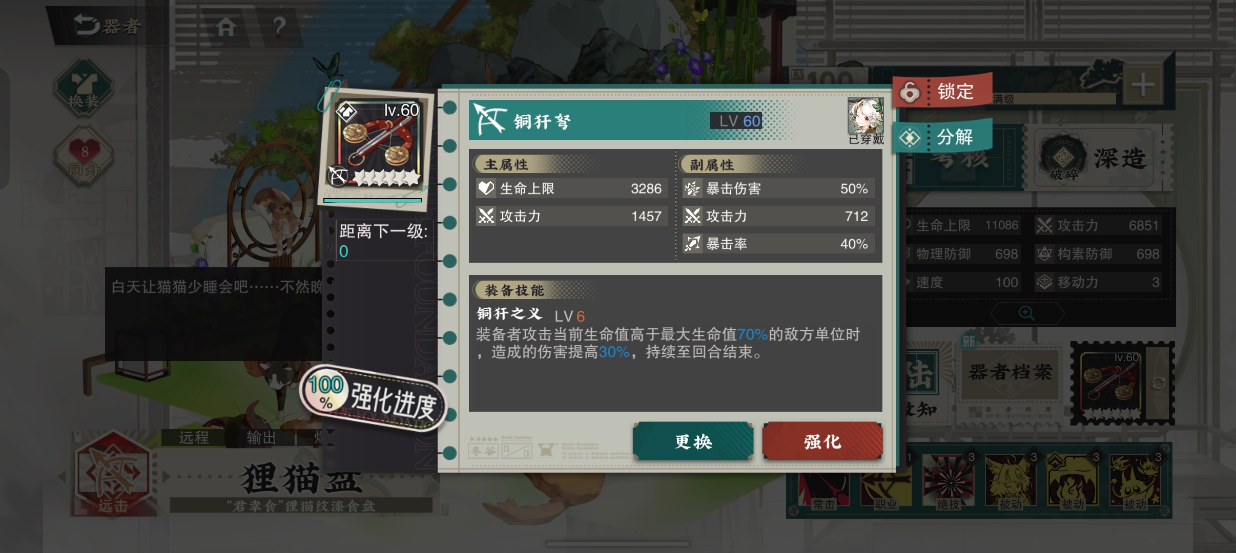 物华弥新狸猫盘进阶-连击能否吃到铜轩弩30伤害加成如下: