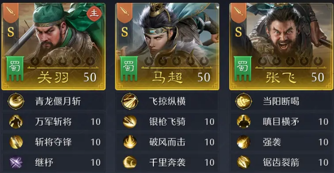 【及锋而试】:这队里突击技能和主动技能极多,可以考虑带及锋而试,从而使关羽打出更多主将技,提高重伤覆盖率。