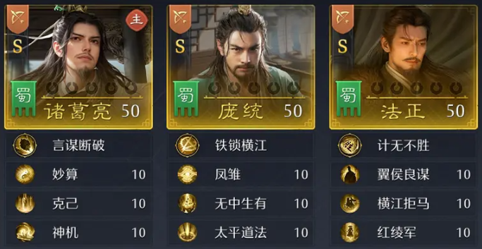 6、备选武将:法正和庞统可以替换为黄月英或者马良。但如果两个同时都需要替换就不推荐使用了。