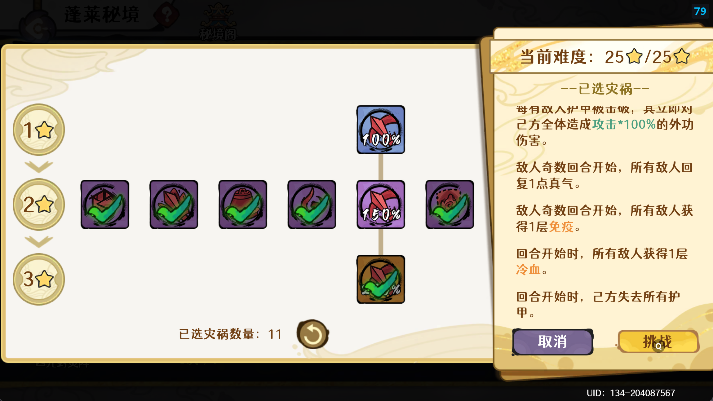 古今2-风起蓬莱【12.29期】蓬莱秘境挑战攻略之灾祸的选择如下: