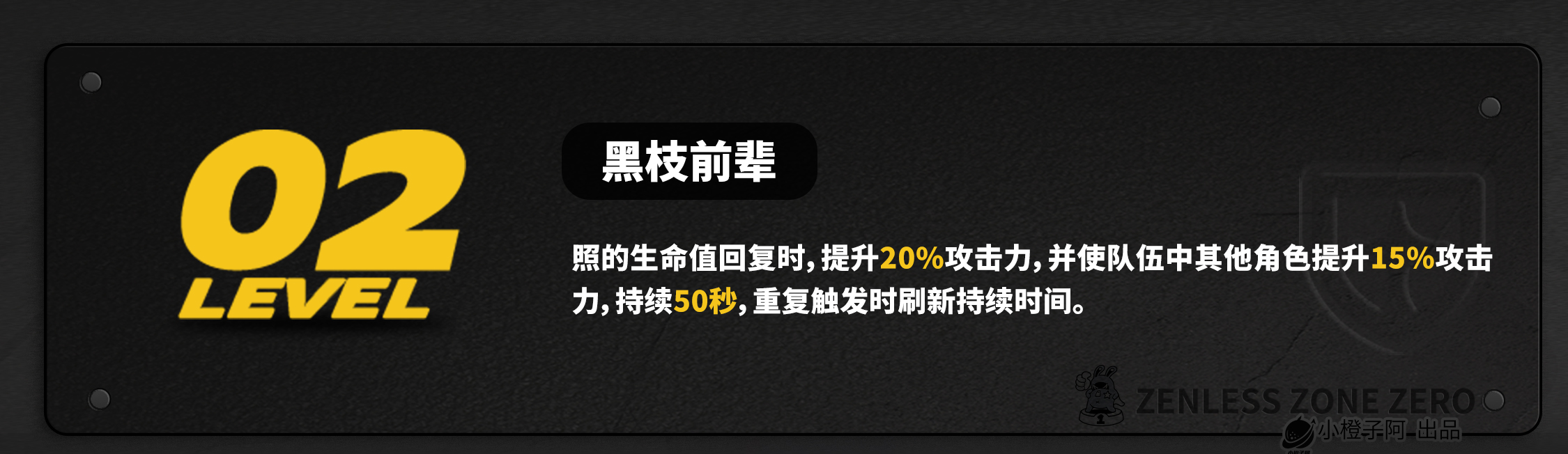 ——强力泛用增益。小照可以为队友提供高额攻击力加成,以及随生命值叠加的增伤,大幅提升队友输出。