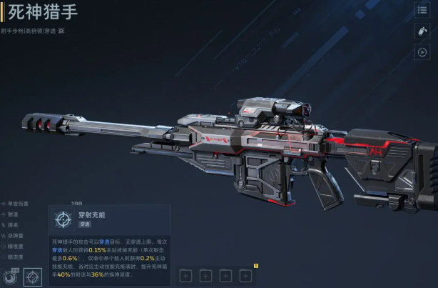 排在第二位的是死亡猎手。它拥有游戏中顶级的穿透能力,子弹可以无伤害衰减地穿透多达6个目标。当开启“急速狂热”技能后,武器将进入强化状态,期间射击不消耗子弹、射速大幅提升,并附带强力的弹压效果。如果单发子弹命中5名敌人,还能获得额外的子弹属性加成。这使得死亡猎手在处理狭窄通道或纵深排列的敌人时,具有不可替代的战略价值。