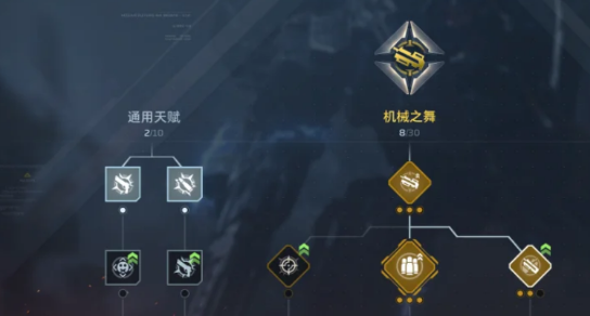天赋选择如果是武器的单体伤害,先解锁【急冻弹幕】天赋,如果武器是AOE伤害优先解锁【机械之舞】天赋,天赋点顺序可以按顺序随便加点,加错了也可以重置。