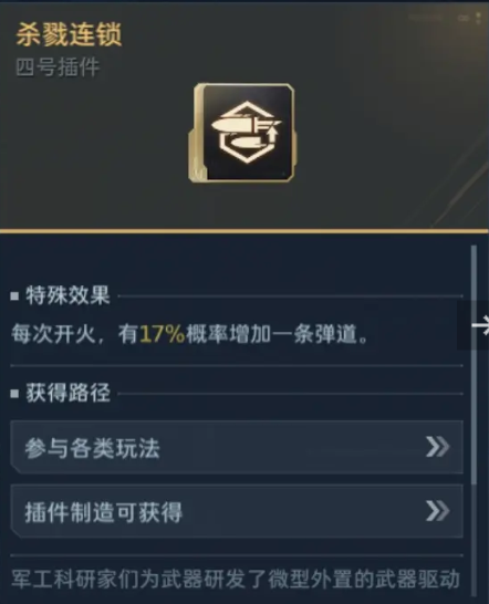 一种是带【杀戮连锁】有百分之17概率增加一条弹道。