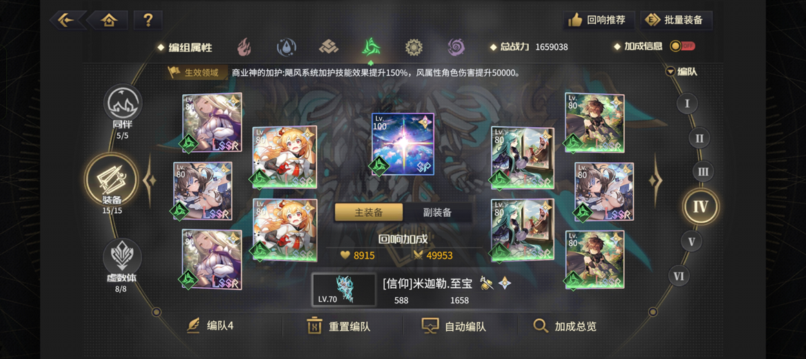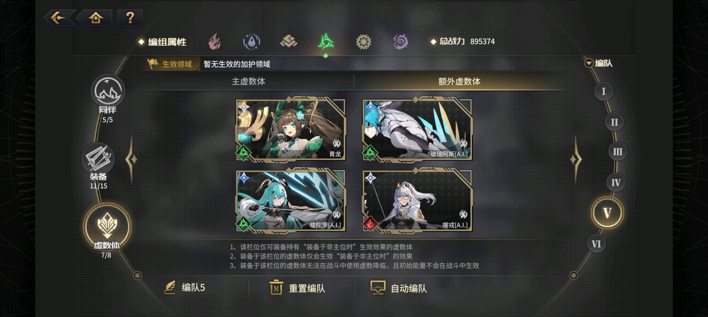 主位召唤机甲足够用时,盈缺和喀戎ai放副位,若无阿娜特,则喀戎ai可以给全队提供5破限,有的话就不要带。