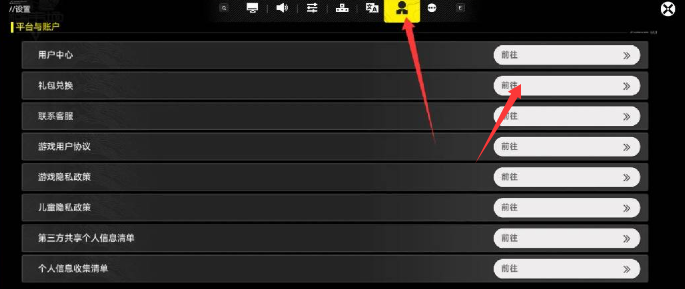 2、选择【平台与账户】→ 找到【礼包兑换】。