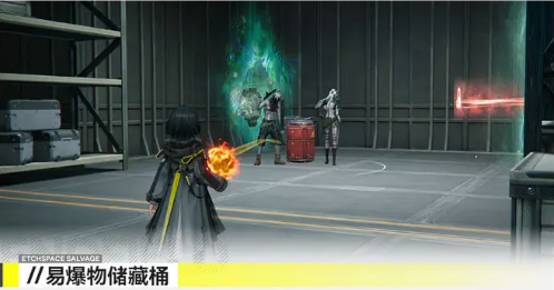 巧妙利用谷地像差中的易爆物储藏桶,可以引发范围爆炸,对周围的敌人造成大量伤害。