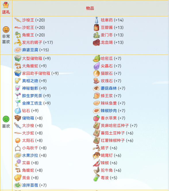 在沙石镇时光中,房时渺是一位可攻略NPC,职业是一位医生,平常居住在诊所,有小伙伴想增进与该角色的好感度,那么沙石镇时光房时渺喜欢什么东西?下面来看看沙石镇时光房时渺礼物喜好一览吧。