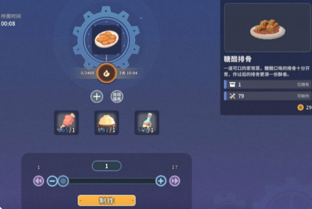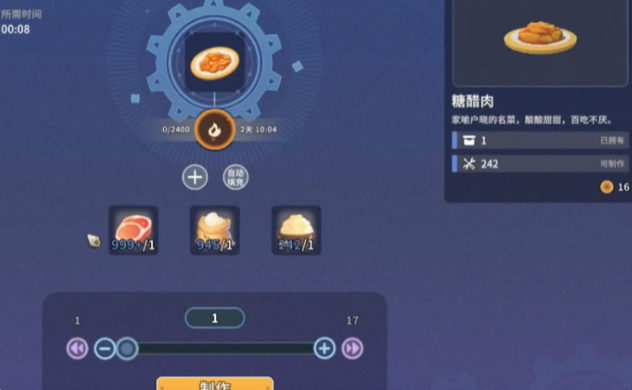 5、咕噜肉:肉+面粉+糖,15体力