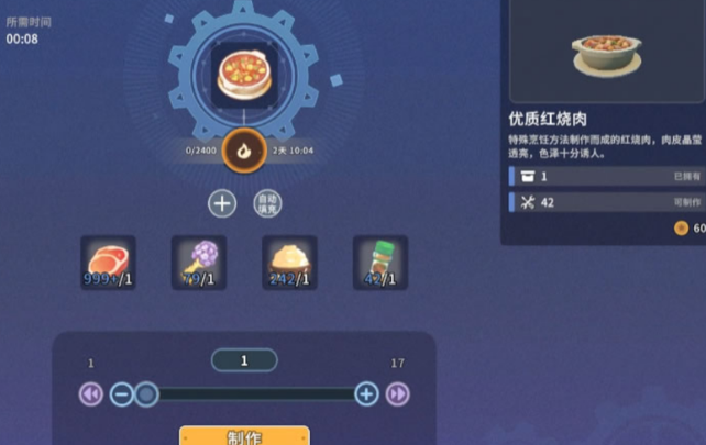 15、优质红烧肉:肉+肉苁蓉+糖+五香料粉,(攻击+12%)30秒