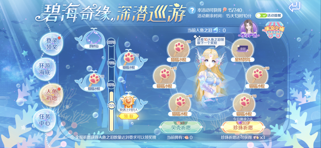 截止至8月21日,参与【水下国度 人鱼舞会】活动,完成任务获得海神的歌声,收到海神祝福的人就可以获得猫猫冰棍哦!