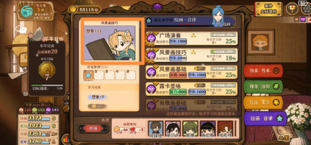点击想要提升的学科,每次指导消耗100声望,对应学科提升12点。