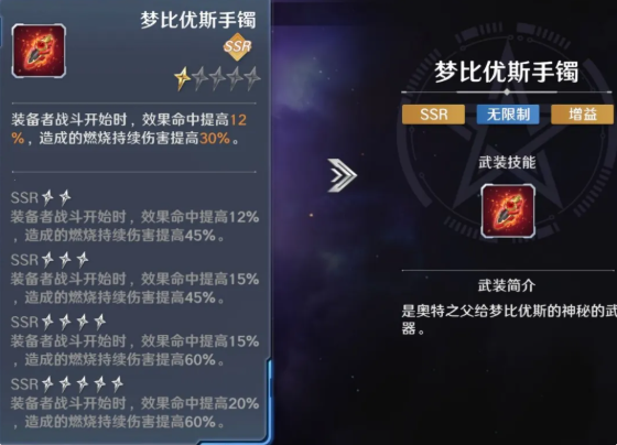 梦比优斯手镯提高效果命中。海洋提高效果命中,黑暗敏捷提高速度抢先手,黑暗女性提高生命增加裂冰输出,闻名增加能量第二回合即可释放必杀,超高速提高免伤 。以控制为主要核心,提高效果命中和速度可各阵容干扰敌方,且利用裂冰不解除可永久持续特性做到使敌方处于负面状态。