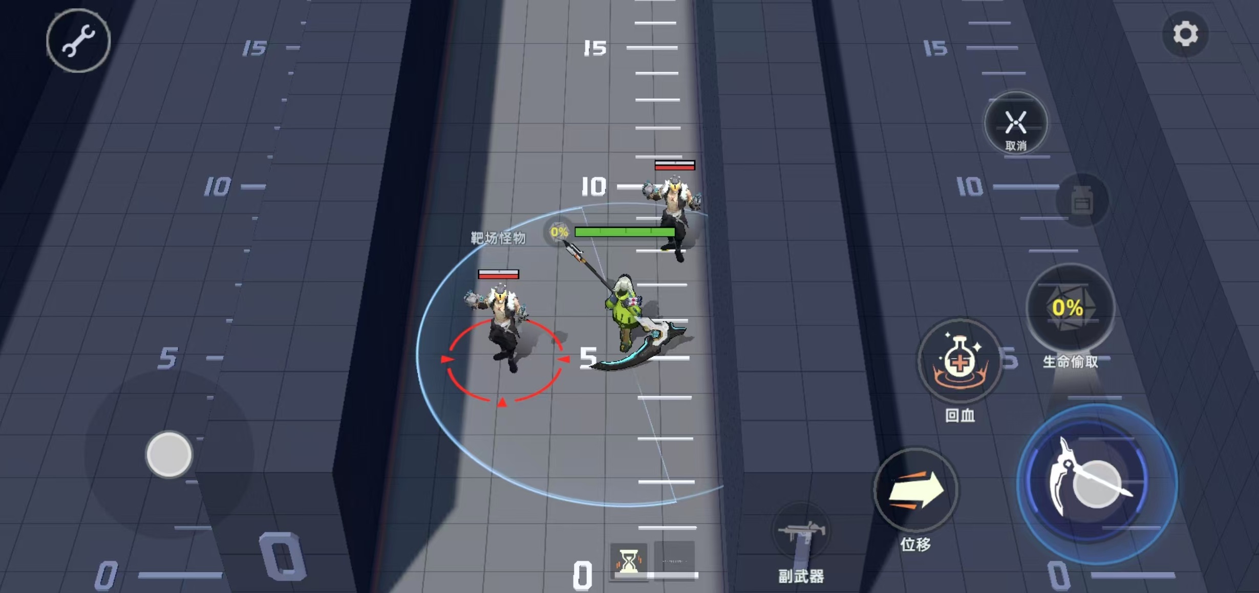 在改造之后,能获得更强的战斗能力,对自身周围快速释放冲击波造成范围伤害,还有挥砍能力,以自身为中心打出圆形范围内的挥砍,造成大范围伤害。在处于非普攻状态时可缓慢补充能量,当能量充满后冲击变成勾刺,向前方刺击后命中目标,可向自身勾回一段距离。结合这些技能效果不难看出,镰刀这款武器很适合持续近战和拉扯续航使用,在近距离缠斗,残血反打和持续战斗等场合搭配上远程武器,能够很好的补伤害和控场。