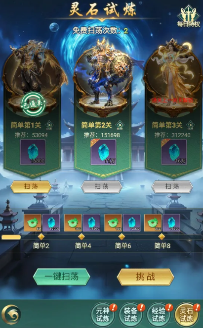 灵石试炼:产出对应养成系统的灵石材料,满足多样养成需求;