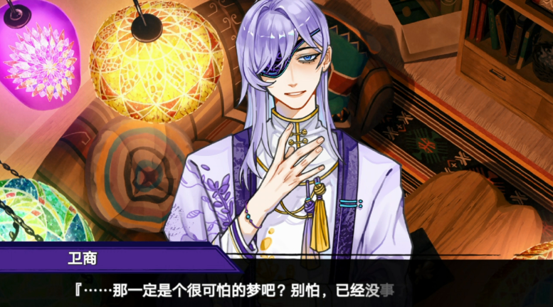 卫商角色的设置使他具有了典型地“温柔疯批”的人物特点。这样设定他表面上温和,实际上却暗藏杀机。他关心主角的不是简单的关心,而是带有强烈占有欲地控制女主角。他所具有的这种心理控制欲,就是他魅力的另一部分。当他说出这样的话来的时候,玩家心中就产生了各种各样的情绪。或许是被这句话所感动,或许是被其中所蕴含的病态控制欲所震撼,卫商的每一个举动都会引起人们的爱与怕。