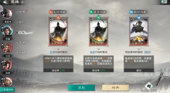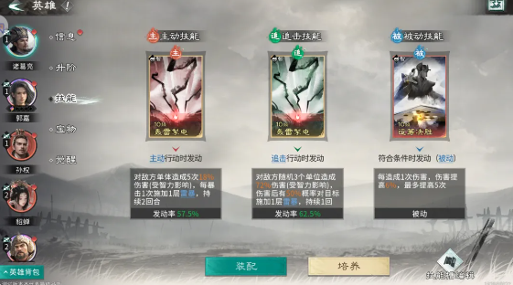 郭嘉:拥有顶级智力成长,对绝大多数敌方武将发起智力拼点都有高胜率,可频繁激活孙权的伤害 / 治疗效果。