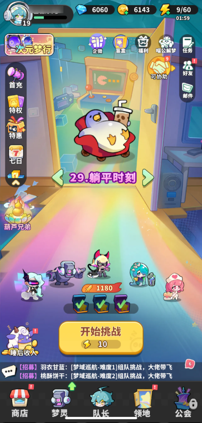 4、梦域巡航(重点):进行3次组队BOSS挑战(消耗60体力)。这是获取高阶装备的主要途径,如果自己战力不足,可以找大佬带飞。