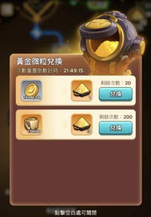 3、黄金微粒获取:新增资源,只能通过消耗金币或黄金转化获得。