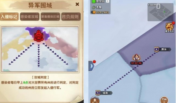 每日早上8点,感染者会对大世界中的随机州府发起宣战,随后开始行军逼近;
