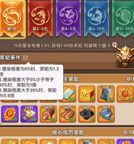 中原沦陷(坏结局):感染者占领州府比例20%,全服结算奖励扣除20%。