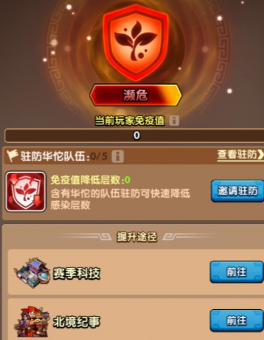 每与感染者发生1次战斗,就会被施加1层免疫值降低debuff;在集结进攻或是驻防作战时,仅有队伍队长会被施加该减益效果,队员不受影响。