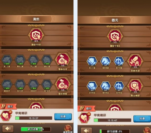本剧本新增专属建筑济世堂,玩法机制类似赤壁之战的定凤台、富甲天下的议政堂。主公通过研习专属兵书,可获取免疫值提升、内政增益、军 事属性等全方位加成。