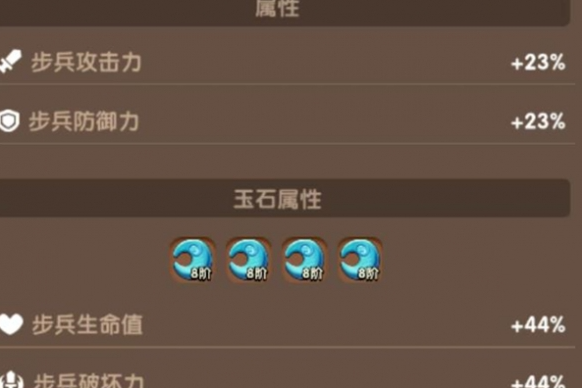 属性搭配上,步兵对应的玉石属性首选生命,神兵主打防御和生命,筑牢队伍前排,保证能抗能稳,这是阵容立足的根本。