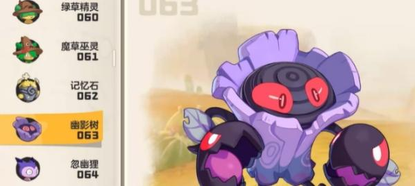 第二个是幽影树,这个精灵的定位偏向坦克。它的输出能力一般,但防御和生存能力很强,靠自身的吸血技能和防御手段可以扛住不少伤害。另外它有一个很厉害的特性,就是能让对面精灵的进化状态倒退回去,这一下子就能让对手丧失大部分战斗力,配合耗能打法效果很不错。
