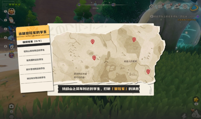 根据手账上的线索,四名冒险家都在地图上红圈中果实标记的地点,击败四名冒险者就可以完成任务。