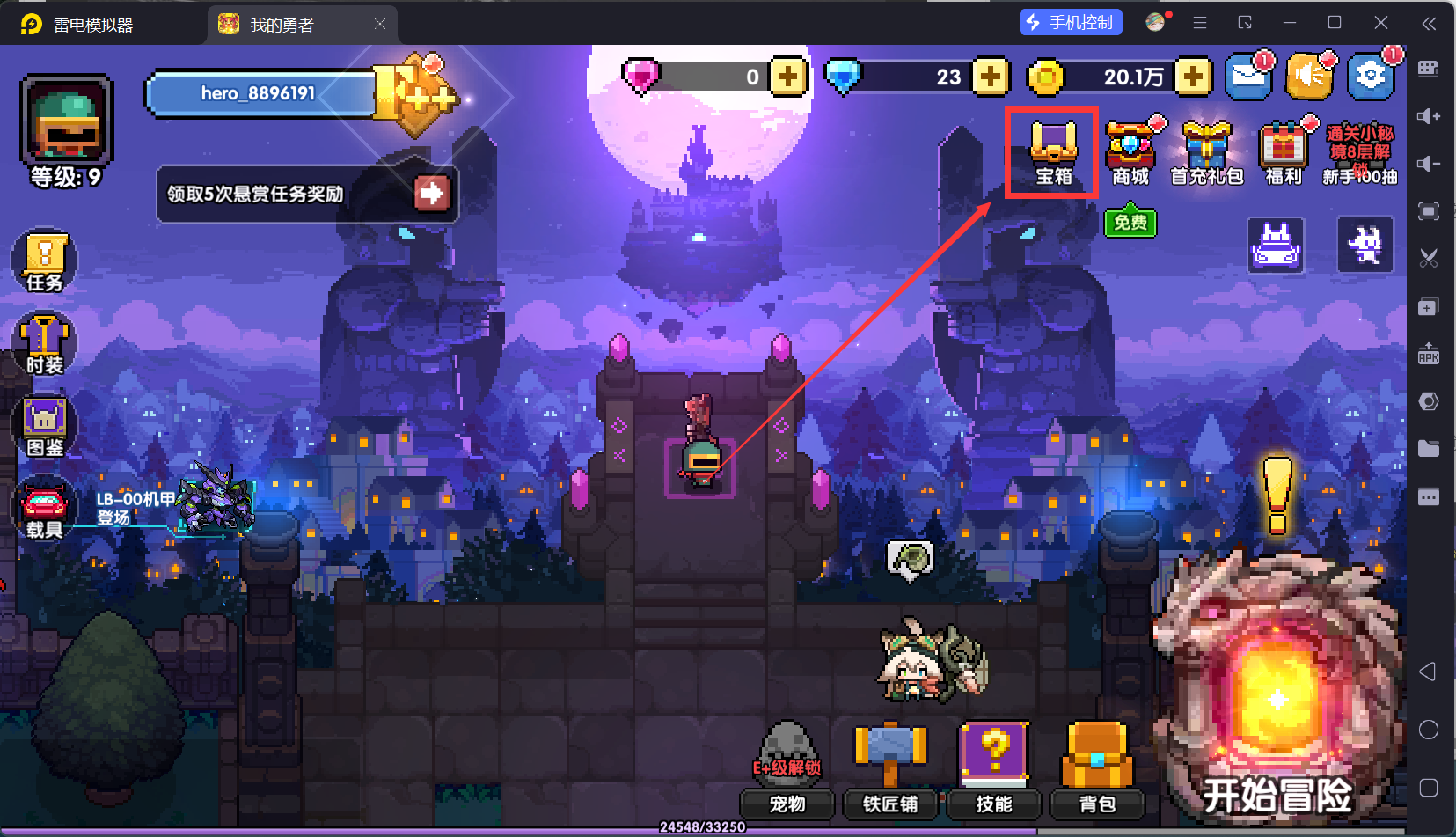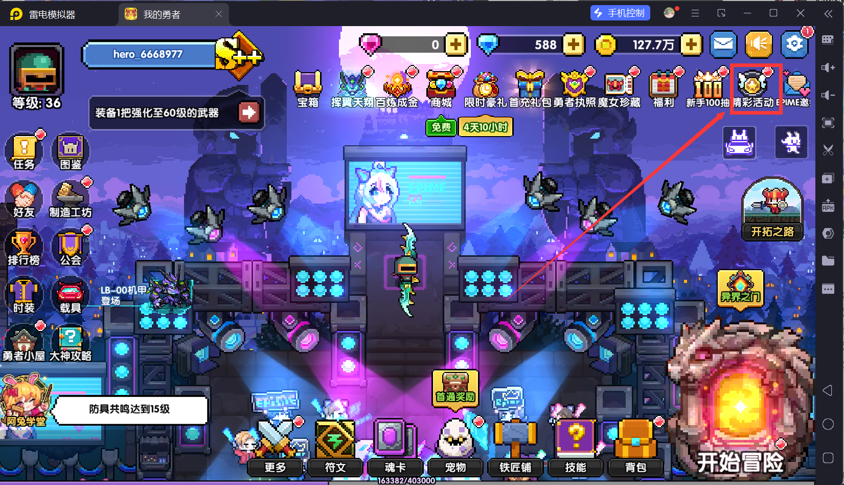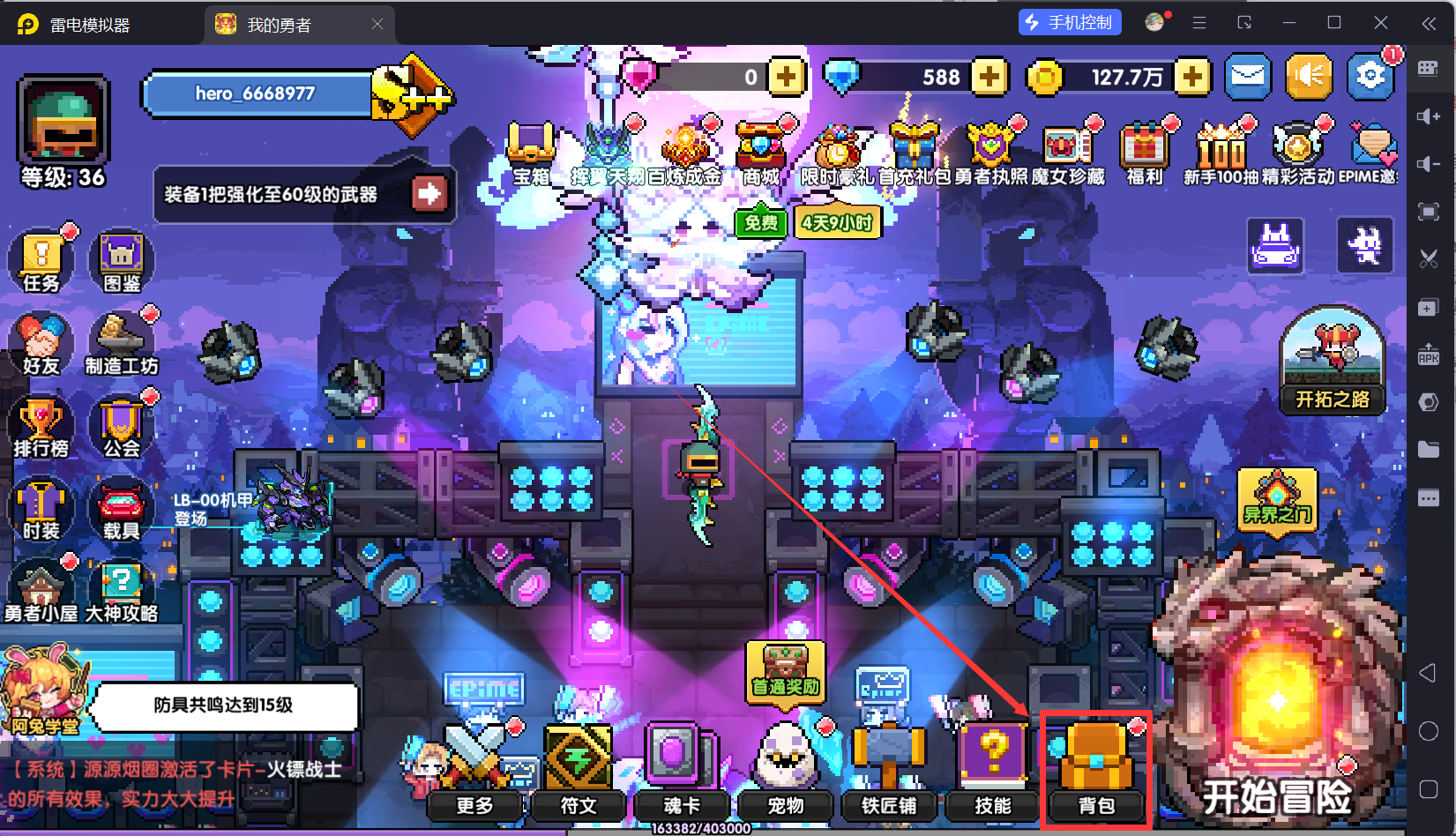 回到主城,然后我们打开体力锁