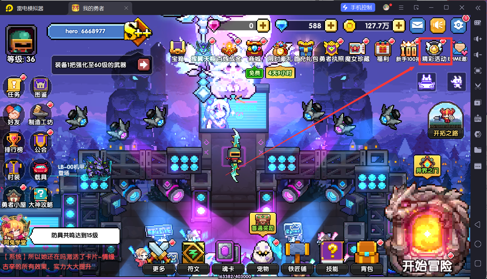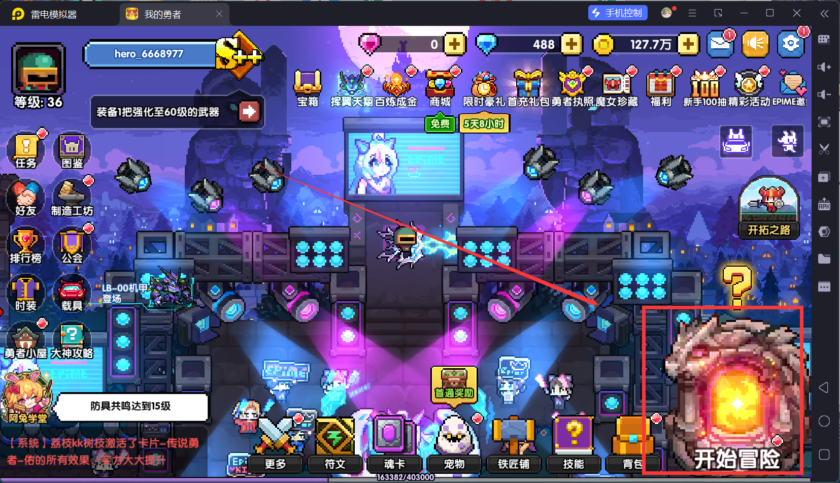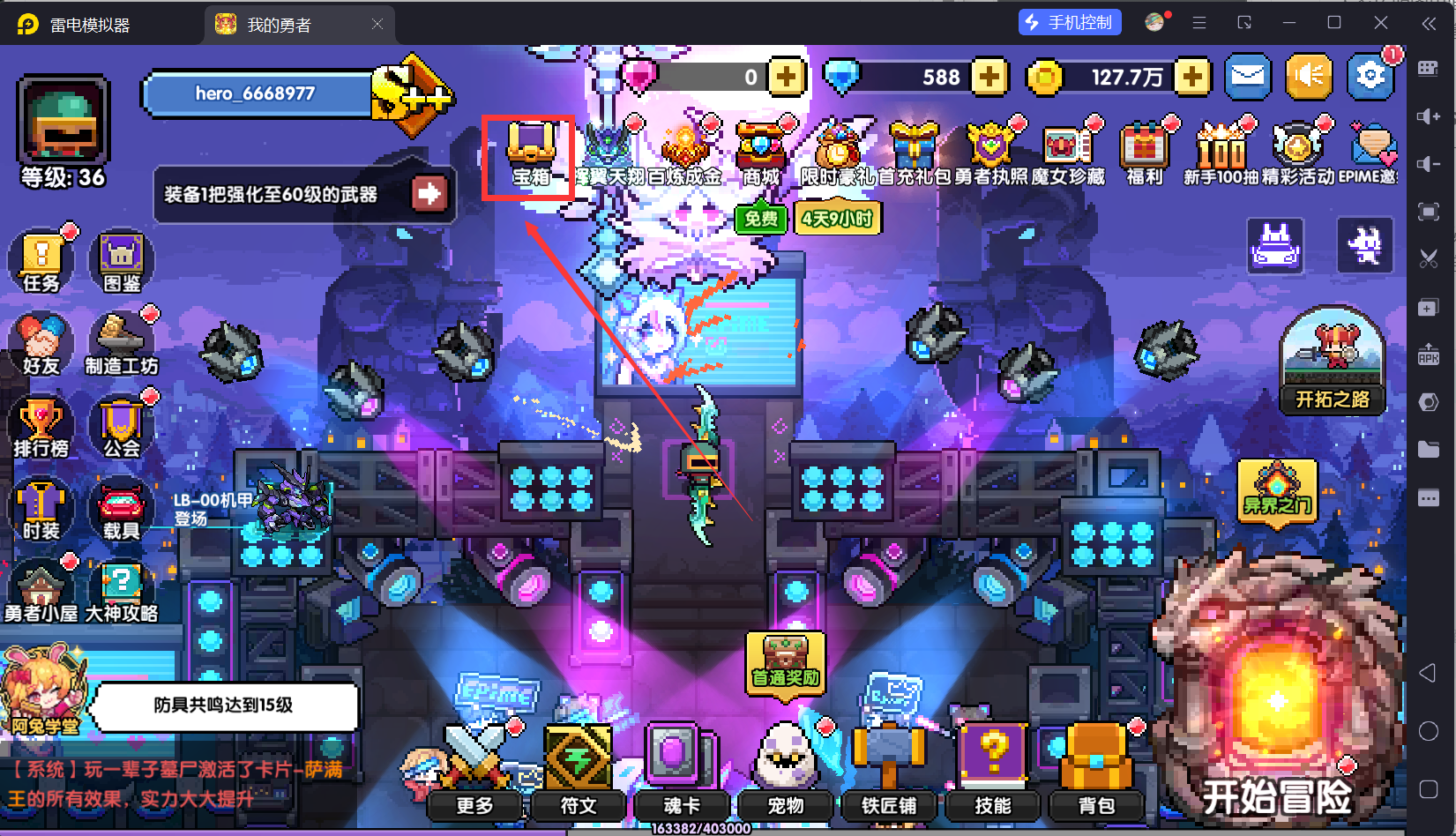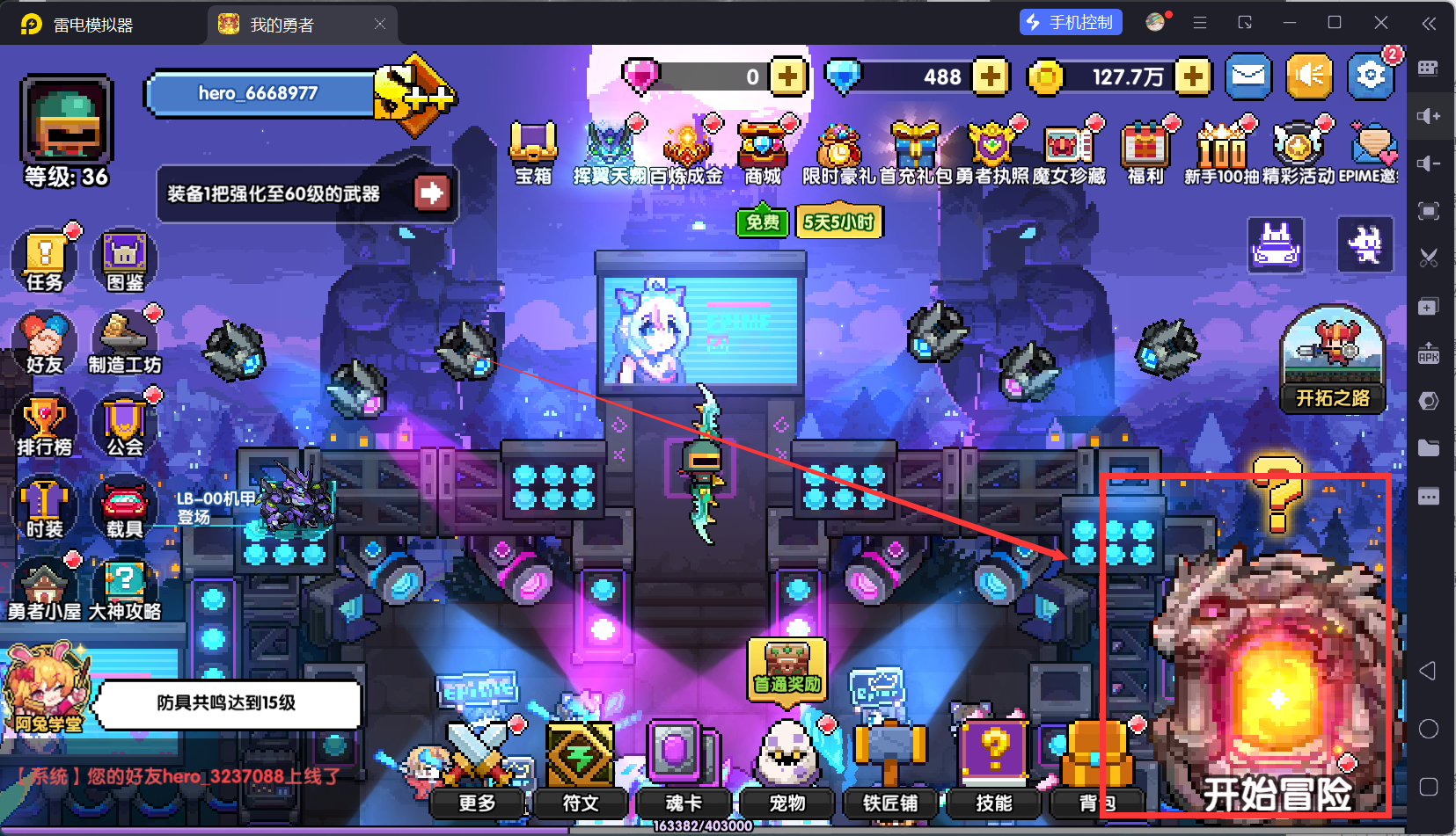 回到主城,然后我们打开体力锁