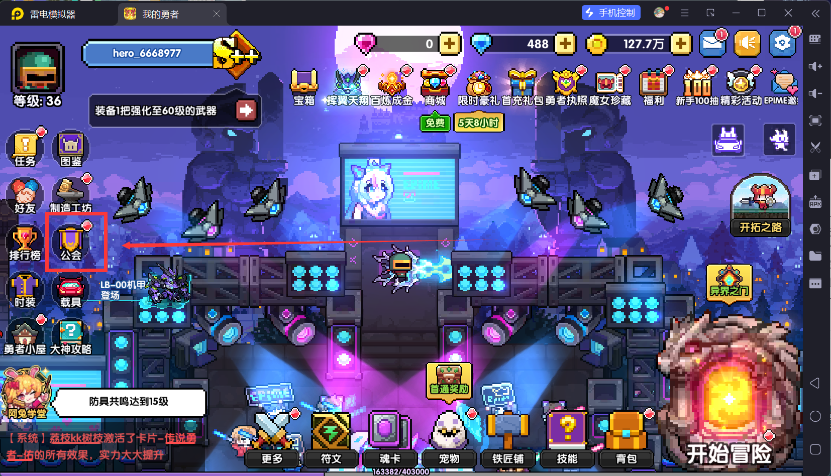 会开启两个系统,竞技场和公会